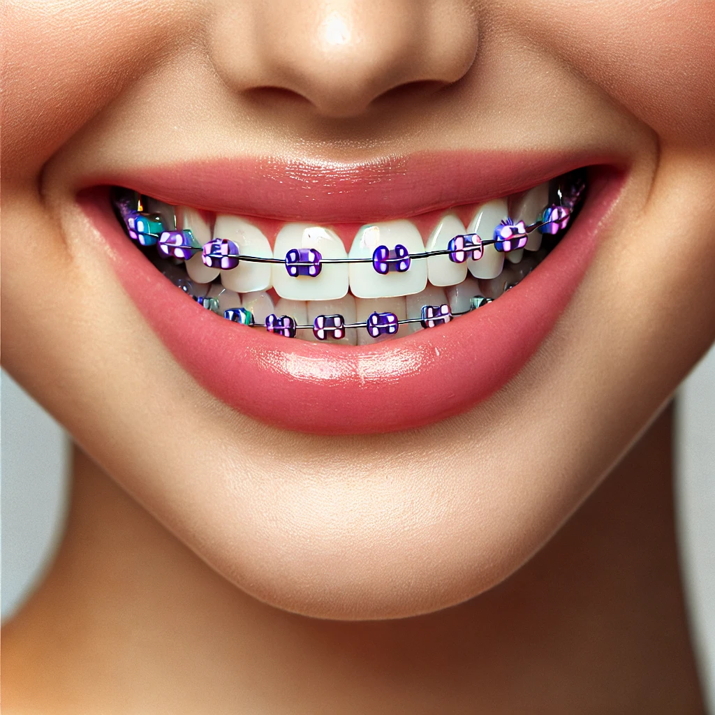 เป็นการจัดฟันโดยการติดเครื่องมือแบบโลหะไว้ที่ผิวด้านหน้าของฟัน ใส่ลวดผ่านร่อง Bracket และใช้ยางโอริง (O-ring) สีสันสดใสรัดตัวเครื่องมือจัดฟันให้ติดกับลวดจัดฟัน ทำให้การจัดฟันติดแน่น และต้องมีการปรับเครื่องมือทุก ๆ เดือน