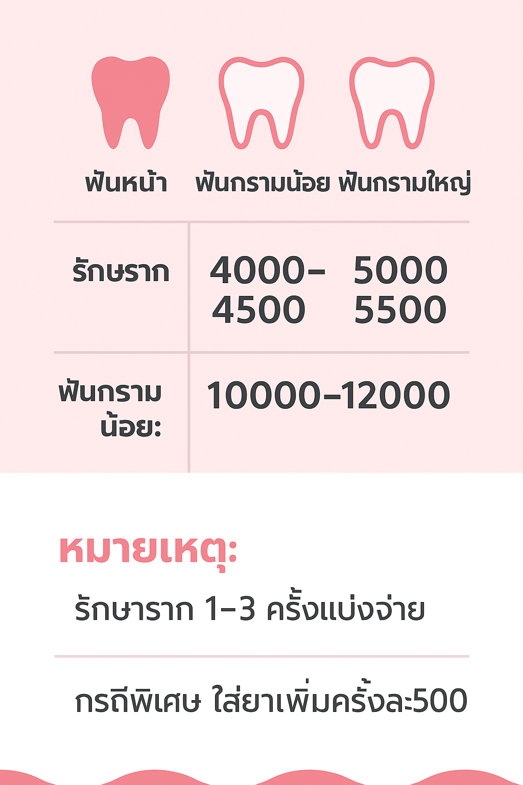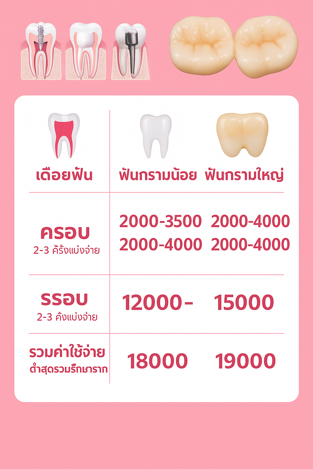ขึ้นอยู่กับ ความยากง่ายและตำแหน่งของฟันที่รักษาราก ยังไม่รวมกับการอุด หรือทำเดือยกับทำครอบฟัน